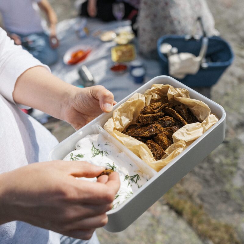 Piknikkori täyttyy maistuvista silakkasipseistä, purkkikala-chowderista sekä erilaisista levitteistä ja dipeistä. Kaverit kasaan, merenrantapiknik odottaa!