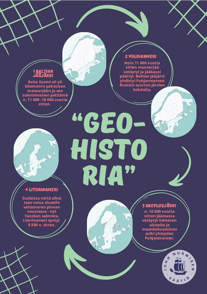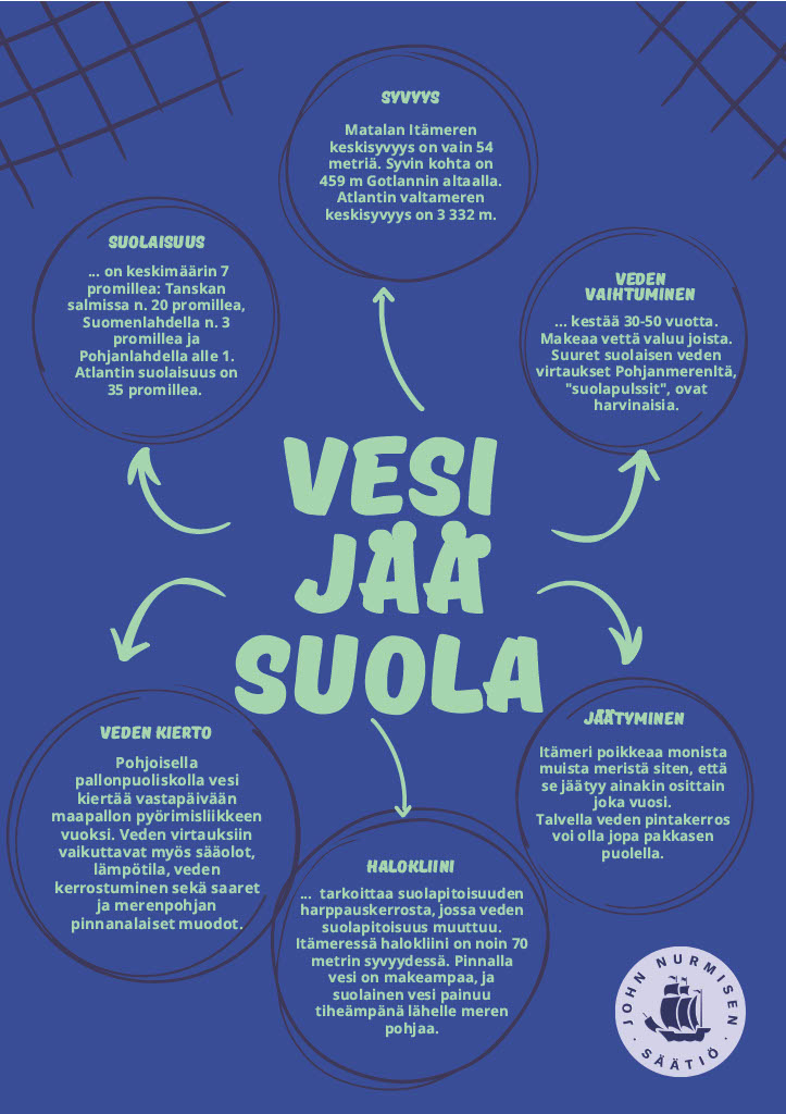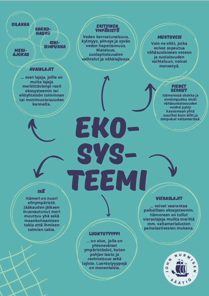 Miten jääkausi on muovannut Itämerta? Mitä tarkoittaa rehevöityminen? Mitä jokainen meistä voi tehdä Itämeren hyväksi? Tietojulisteet ja valmiit tehtävämonisteet käsittelevät meren ekosysteemiä, suojelua ja geohistoriaa.
