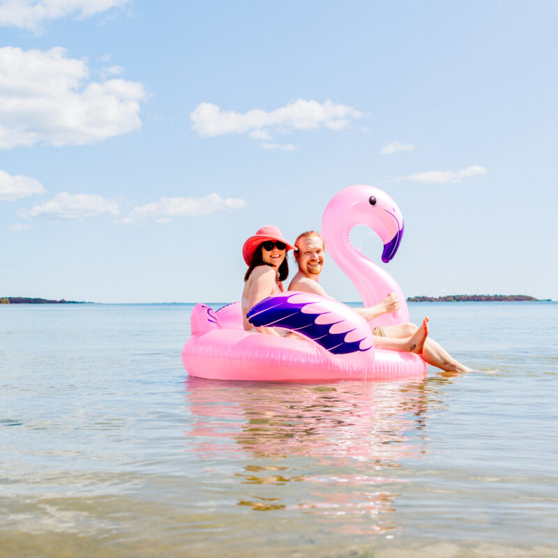 Uinti on paitsi hauskaa myös yksi terveellisimmistä tavoista nauttia kesästä. Veteen pulahtaminen virkistää hellepäivänä, rentouttaa kiireen keskellä ja tuo kehoon liikettä, joka tekee hyvää nivelille ja lihaksille. Hauskanpidon ohella on tärkeää pitää huolta uimisen turvallisuudesta. Ethän mene veteen yksin. Pulahduksissa kannattaa aina olla mukana kanssapulahtaja tai rannalla kaveri, joka katsoo perään!